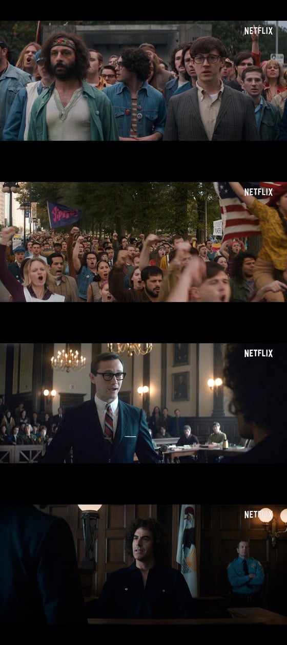 최근 넷플릭스 측은 '트라이얼 오브 더 시카고 7' 메인 포스터와 티저 예고편을 공개했다. '트라이얼 오브 더 시카고 7'은 1968년 시카고, 민주당 전당대회에서 평화롭게 시작했던 반전 시위가 경찰 및 주 방위군과 대치하는 폭력 시위로 변하면서 7명의 시위 주동자 시카고 7이 기소되었던 악명 높은 재판을 다룬다. 당시 정부는 불법 공모와 폭동 선동, 음모 혐의로 총 여덟 명을 기소했으나 한 명이 재판에서 제외되면서 이후 시카고 7으로 불리게 됐다.