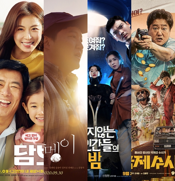 ○…'담보'와 '돌멩이' '죽지 않는 인간들의 밤' '국제수사', 그리고 '강철비2: 정상회담 확장판'이 추석영화로 관객과 만난다. '담보'와 '죽지 않는 인간들의 밤' '국제수사'는 9월29일, '돌멩이'는 9월30일 개봉한다. '강철비2: 정상회담'은 9월30일 롯데시네마에서 단독 개봉한다. 이번 추석 영화들의 특징은 코로나19 확산으로 개봉이 밀린 영화들이 한 데 몰렸다는 점이다. 사회적 거리두기가 격상되면서 개봉을 연기한 영화들이 추석 시즌 개봉을 선택하면서 다양한 장르가 풍성해졌다는 게 특징이다. 추석 신작들 개봉으로 일일 관객수가 5만명 이하로 줄어든 극장가에 활기가 돌지 주목된다.