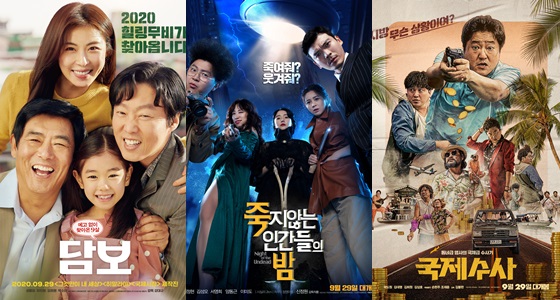 추석 연휴를 앞두고 한국영화 세 편이 9월 29일 동시에 출격한다. 코미디 영화 '죽지않는 인간들의 밤', '국제수사'와 웃음과 감동을 장착한 '담보'가 그 주인공이다. 믿고 보는 배우들로 무장한 추석 영화 세 편을 미리 만나보자.