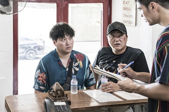 이번 영화로 처음 코미디 연기에 도전한 곽도원은 충청도 사투리를 쓰며 해외로 간 시골 경찰 역할을 연기한다. 여권, 지갑, 핸드폰까지 모두 소매치기 당한 그는 '남자들의 우정'을 위해 범죄 누명까지 쓰고 친구 용배를 도우려고 하지만 점점 나락으로 빠질 뿐이다. 곽도원의 연기력이야 여러 작품을 통해 증명 됐지만 이번 작품에서는 그의 장점이 잘 드러나지 않는다. 병수가 아내와 딸을 데리고 필리핀까지 가서는 여행을 포기하고 사건에 휘말리는 이유가 애매하다. 경찰의 자부심을 가진 그가 바다에 묻혀있는 금을 찾아 150억원 이득을 취하기 위해 가족을 팽개쳤다고 보면 캐릭터가 힘을 잃는다. 그게 아니라 용배와의 우정을 위해서 움직인다고 하기에도 관객을 설득하지도 못한다. 주인공 행동의 동기가 정확하게 드러나지 않으니 캐릭터도 살아나지 않는다. 일단 캐릭터가 흔들리니 던지는 코미디도 와 닿는 게 없다.