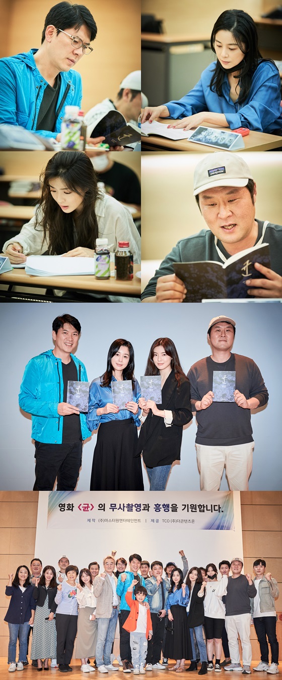 배우 김상경, 이선빈, 윤경호, 서영희가 주연을 맡은 가습기살균제 참사 피해를 다룬 영화 '균'이 리딩 현장을 공개하며 본격적인 촬영 시작을 알렸다. 송영규, 성병숙, 장혁진 등 내로라하는 연기파 배우들까지 합세해 리얼리티를 극대화할 라인업을 구축했다.
