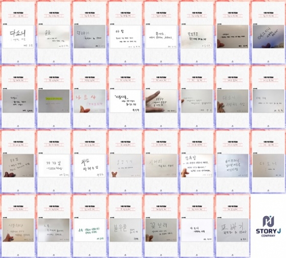9일 스토리제이컴퍼니 측은 한글날을 기념하며 한마음 한뜻으로 뭉친 소속 배우 31명의 개성 넘치는 손글씨를 공개했다. 이들은 뜻이 좋은 순우리말 단어를 직접 손으로 옮겨적으며 한글날의 의미를 되새겼다.