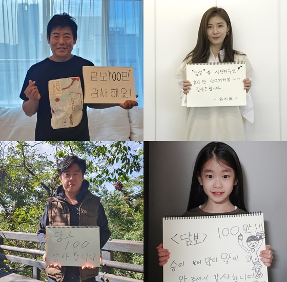 성동일은 "단단히 무장하시고 극장을 찾아주신 관객 여러분의 성원 덕분에 <담보>가 누적 관객수 100만 명을 돌파했습니다. 정말 감사 드립니다"라는 소감을 밝혔다. 어른 승이 역을 맡은 하지원은 "'담보'를 사랑해주신 100만 관객 여러분 진심으로 감사 드립니다. 앞으로도 '담보' 많이 사랑해주세요”라는 메시지를 전했다. 종배 역의 김희원은 "어려운 시국에 극장을 찾아주셔서 '담보' 100만을 만들어주신 관객 여러분께 진심으로 감사 드립니다"라고 말했고 9살 승이 역의 박소이 역시 "관객 여러분 덕분에 '담보'가 100만을 돌파했대요. 정말로 감사합니다. 저 승이가 많이 보고 싶으면 우리 '담보' 영화 엄청 많이 봐주세요"라는 깜찍한 인사를 남겼다.