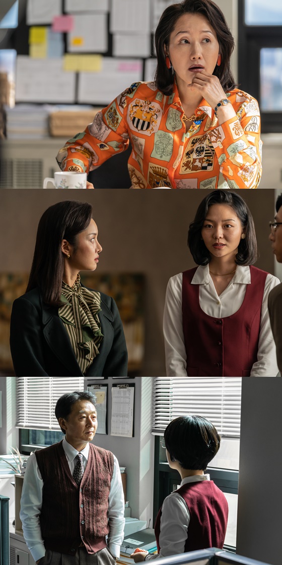 이어 '엑시트', '사바하', '암수살인' 등 맡는 역할마다 독보적인 존재감을 드러낸 배해선은 아이디어만 좋으면 말단 사원의 의견도 쿨하게 받아들이는 마케팅 부의 반은경 부장 역을 연기했다. 창의성과 자유로움이 관건인 마케팅부인 만큼 화려한 의상으로 자기표현을 한 배해선은 커리어우먼의 포스와 열린 상사의 풍모를 완벽히 담아냈다. 부장에게 인정받길 원하는 대졸 대리 조민정 역의 최수임은 유나(이솜 분)의 아이디어를 훔쳐 부장에게 칭찬을 받아왔지만, 유나가 좋은 아이디어를 직접 이야기하려 하자 견제하는 눈빛의 얄미운 상사의 모습을 그려내 관심과 견제라는 대기업 조직의 모습을 실감 나게 보여준다.