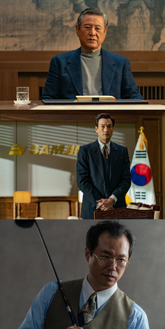 마지막으로 삼진그룹을 글로벌 기업으로 이끌어 나가는 임원진들의 모습도 눈길을 끈다. 먼저 재벌의 가족 세습 관행을 깨기 위해 미국 MBA 출신의 전문 경영인을 CEO로 들인 회장 역의 박근형은 한 기업을 거대하게 키워온 노련한 경영인의 모습을 카리스마 넘치는 눈빛으로 연기해냈다. 또한 국제화 시대에 딱 맞는 미국인 신임 사장 빌리 박은 '미스터 션샤인', '태양의 후예', '킬잇' 등에서 탄탄한 연기력을 바탕으로 강렬한 존재감을 선보였던 데이비드 맥기니스가 맡아 삼진그룹 내 혁신의 기운을 불어넣어 준다. 당연히 삼진전자의 사장이 될 줄 알았기에, ‘빌리 박’을 질투하는 회장 아들 오태영 상무는 백현진 특유의 어눌한 말투와 심상치 않는 살벌함을 담아낸 행동으로 극의 긴장감을 자아낸다. 이처럼 '삼진그룹 영어토익반'은 말단 사원부터 회장까지 기업이라는 유기체를 빈틈없는 개성과 연기를 갖춘 배우들이 적재적소 장면에 등장, 자신만의 빛나는 개성과 존재감으로 영화의 유쾌한 재미를 채워낼 것으로 기대를 모은다.