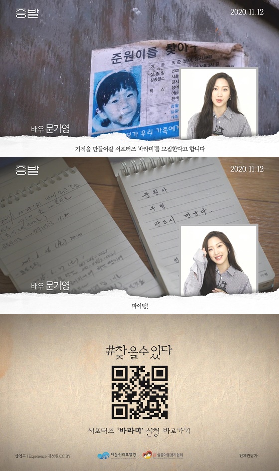 문가영은 "아직도 600명이 넘는 10년 이상 장기 실종아동이 있다고 하는데 장기 실종아동 상봉을 위해 작은 관심과 기억이 절실하게 필요한 지금"이라며 익숙함을 이유로 쉽게 외면받았던 실종아동 문제에 대한 관심을 당부했다. 또한 '증발'이 20년 이상 장기 실종아동과 직접 매칭되어 기적을 만들어갈 서포터즈 바라미를 모집한다고 한다"고 전했다.