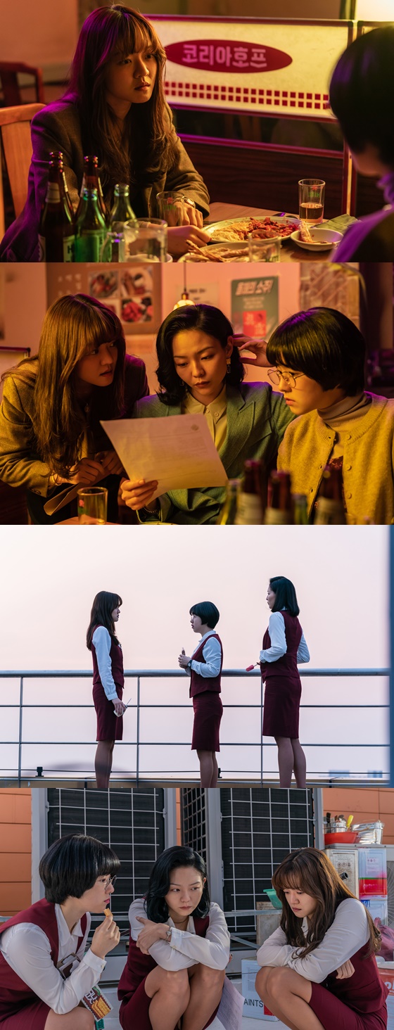 퇴근 후 회사 근처 '코리아 호프'에 모인 자영(고아성 분), 유나(이솜 분), 보람(박혜수 분)은 먹태와 골뱅이에 맥주를 마신다. 맥주와 찰떡궁합인 먹태와 골뱅이를 먹으며 회사에서 있었던 이런저런 이야기를 나누는 세 친구. 자영은 수질검사를 통해 옥주공장의 페놀 유출 사건에 문제가 없음을 증명해 보인 회사를 믿지만, 한편으로는 자신이 목격한 장면이 진짜일 수도 있다는 생각에 괴로워한다.