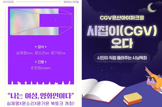 12일 CGV는 오는 13일에 북토크 '나는 여성, 영화인이다'를, 27일 '시집이(CGV) 오다!' 시 낭독회를 진행한다고 밝혔다.