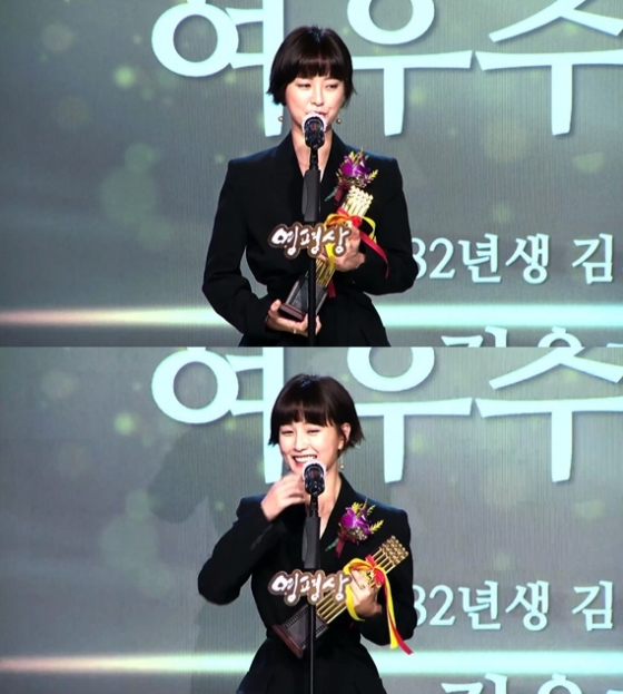 이날 수상한 정유미는 기쁜 마음으로 무대에 올랐지만, 준비한 수상소감을 다 하지 못했다.