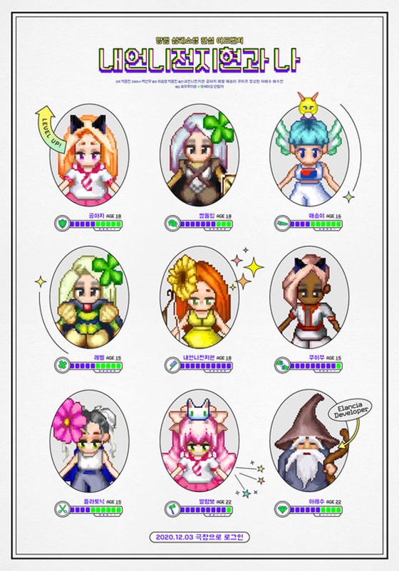 공개된 스페셜 포스터는 '내언니전지현과 나'의 연출자인 박윤진 감독과 영화 속 주요 등장인물 9명을 일랜시아 버전으로 표현해 시선을 사로잡는다. 특히 실제 게임에서 사용하는 닉네임, 게임 속 나이, 캐릭터 능력치 등 각자 개성을 강조한 형형색색의 비주얼이 단숨에 시선을 압도한다.