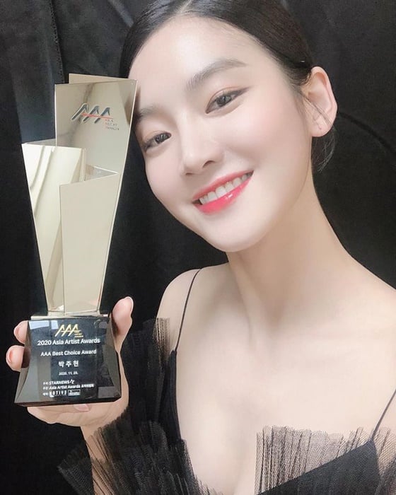 공개된 사진 속 박주현은 2020 AAA에서 베스트 초이스 상을 수상한 뒤 받은 트로피를 들고 인증샷을 찍고 있는 모습이다. 블랙 드레스로 2020 AAA를 수놓은 박주현의 미소는 보는 이들도 덩달아 웃게 만들어 시선을 끈다.
