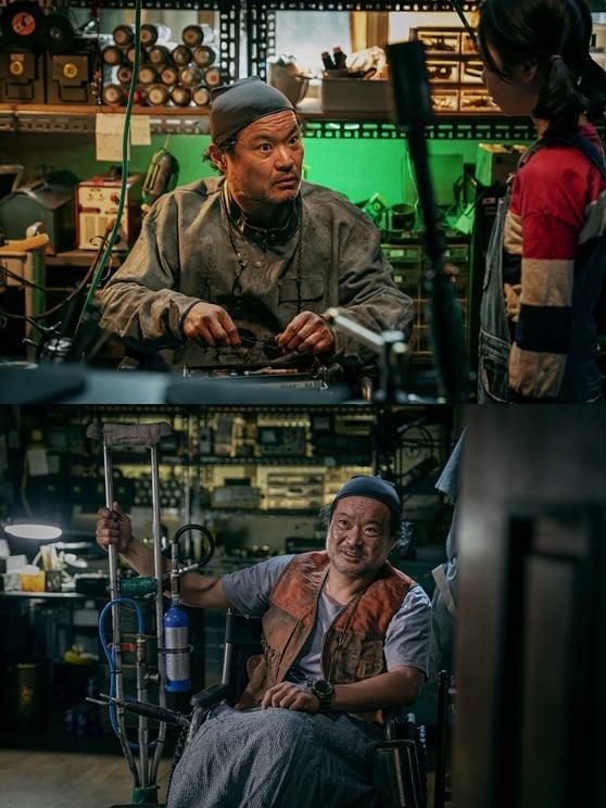 ▶ 무기를 만드는 것 그리고 무기를 휠체어를 타고 잘 쓸 줄 아는 것이 매력적이다. 두 발이 자유롭지 않아도 유연하고 능수능란하게 착착착 쓰는 모습이 신발을 신는 것처럼 느껴졌는데 그게 아주 좋았다. 두식의 물리적 공간이 작지만 그 안에서 무기와 두식의 팔이 하나로 보일 정도로 자유자재로 그리고 역동성을 살리고 싶었다. 걸리적거리는 것처럼 보이면 실패하는 것이라 고민과 노력을 많이 했다. 이 점을 감독님도 아셔서 연출적인 도움을 많이 받았다.
