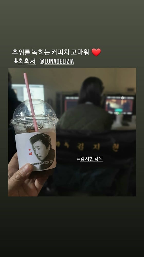 또한 류승룡은 "추위를 녹히는 커피차 고마워"라는 글과 함께 최희서의 인스타그램 아이디를 태그했다. 이어 커피차를 인증하며 고마운 마음을 드러냈다.