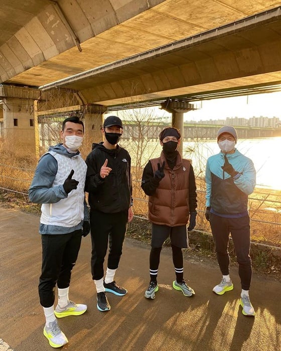 션은 23일 자신의 인스타그램에 "새 멤버 주말 일출 러닝 10km 아직 이름 못 정한 러닝크루 #조원희 #션 #임시완 #이영표 사진 by 지나가시던 러너(감사합니다!)"라는 사진과 함께 한 장의 사진을 게재했다.
