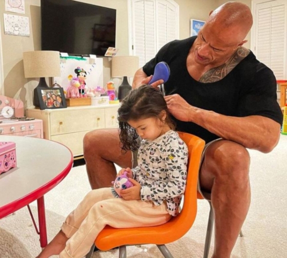 드웨인 존슨은 지난 22일(현지시간) 자신의 인스타그램에 4살짜리 막내딸 티아나 지아의 머리를 빗는 사진을 게재했다.