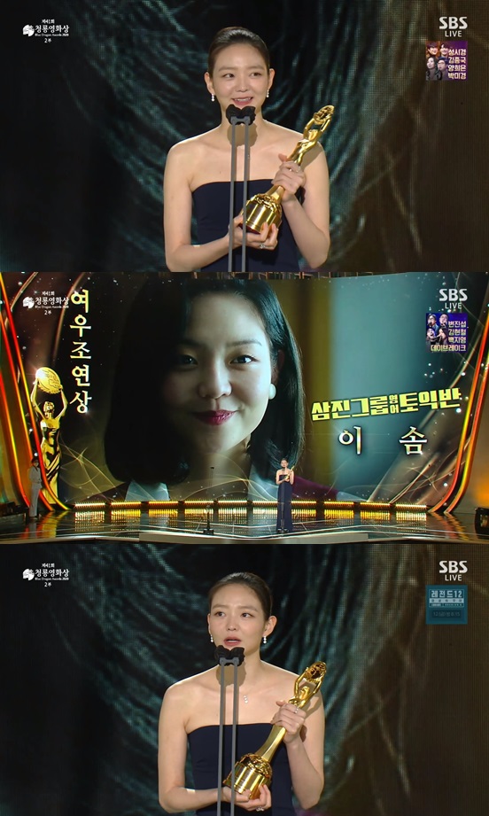 여우조연상을 수상한 이솜은 "정말 몰랐다. 이렇게 큰 상을 주셔서 감사드린다. 저희 영화 개봉까지 힘써 주신 분이 많다. 영화 스태프들, 아성이 혜수 고맙다"라고 인사했다.