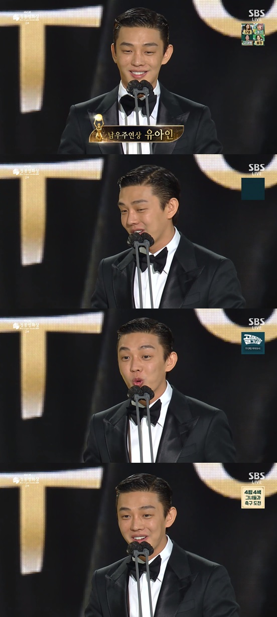 배우 유아인이 '소리도 없이'로 청룡영화상 남우주연상을 수상했다.