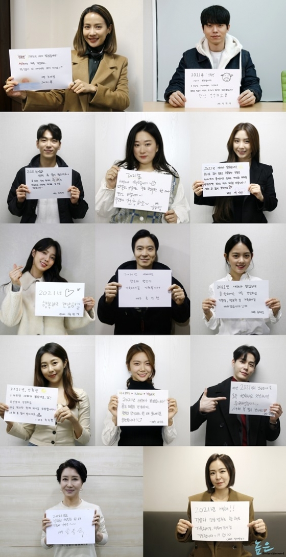 또 매 작품 고품격 열연으로 극의 흥미를 더하는 배우 송옥숙과 윤서현, 심이영, 엄현경이 새해에는 모두의 건강을 소망하는 덕담을 건넸다. 여기에 배우로서 새로운 출발을 알린 이가은과 장태훈이 "새해에는 원하시는 모든 일이 이루어지길 간절히 바랍니다"라며 따듯한 인사를 건넸다.