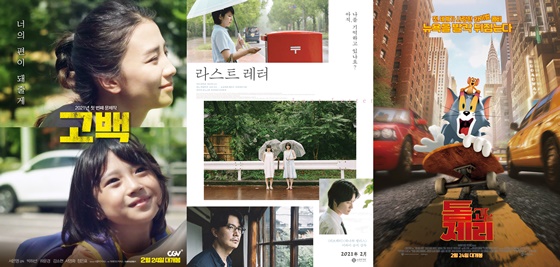 김영광, 이선빈 주연의 '미션 파서블'이 개봉 후 디즈니·픽사 애니메이션 '소울'을 밀어내고 박스오피스 1위를 달리고 있다. '미션 파서블'에 맞설 다양한 장르의 영화들이 관객과 만날 준비를 마쳤다. 바로 '고백', '라스트 레터', '톰과 제리'다.