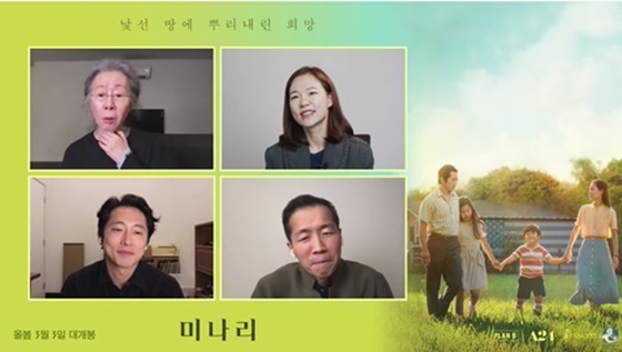 26일 오전 영화 '미나리'(감독 정이삭) 화상 기자 간담회가 열렸다. 이 자리에는 정이삭 감독, 스티븐 연, 한예리 그리고 윤여정이 참여했다.
