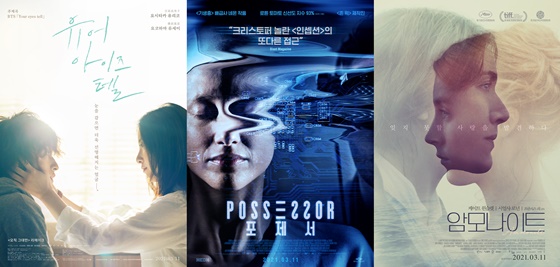 코로나19로 주춤했던 신작들이 3월이 되자 기지개를 펴기 시작했다. 다양한 장르의 영화들이 관객과 만난다. '유어 아이즈 텔', '포제서', '암모나이트'가 큰 스크린을 통해 보는 이들에게 많은 것을 전달할 예정이다.
