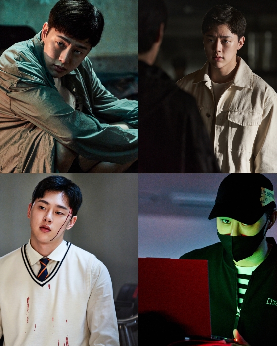 사진 속 권현빈은 누군가와 마주 보는 눈빛에서 강렬한 카리스마가 느껴지는가 하면 교복 차림에 피를 흘리는 모습에 감춰진 사연은 무엇일지 궁금증을 자극한다. 깊게 눌러 쓴 모자와 마스크 사이로 모니터를 응시하는 날카로운 눈빛만으로 권현빈의 활약이 어떠할지 기대감을 더하고 있다.