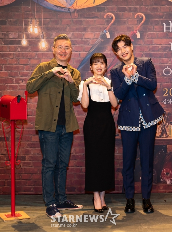 31일 오전 영화 '비와 당신의 이야기'(감독 조진모) 온라인 제작보고회가 열렸다. 이날 행사에는 강하늘, 천우희, 조진모 감독이 함께 했다. 영화 '비와 당신의 이야기'는 우연히 전달된 편지 한 통으로 서로의 삶에 위로가 되어준 영호와 소희, '비 오는 12월 31일에 만나자'는 가능성이 낮은 약속을 한 그들이 써 내려가는 아날로그 감성 무비다.