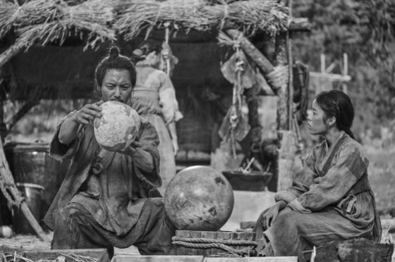 ▶'자산어보' 순 제작비는 42억원 가량이다. 촬영지에 태풍이 3번이나 왔는데 컬러로 찍었다면 촬영을 못했을 것이다. 미술이나 세트를 태풍이 왔을 때마다 다시 수정해야 했을테니. 태풍이 온다니 일단 피하고 갔다니 만회하자고 해서 오히려 회차를 줄였다. 위기가 오면 찬스라 생각했다. 예컨대 창대의 관아 하이라이트 장면은 남양주에 있는 '취화선' 세트에서 찍었다. 오래되다 보니 컬러로 찍었다면 미술을 다 다시했어야 할 판이었다. 그런 비용 절감 측면에서 좋은 효과를 얻었다. 물론 이 영화와 흑백이 맞다는 생각이 가장 먼저였고. 다만 흑백이다 보니 자칫 관객에게 정보값이 부족하진 않을까 고민은 했다. 그래서 물고기는 컬러로 할까도 생각해봤고. 결국 지금이 최선이라고 생각해서 만들었다. 다만 쌀에 모래를 섞는 장면은 아쉽더라. 겨와 모래가 흑백이다보니 잘 구분이 안 가는 것 같아서 아쉬움이 남았다.