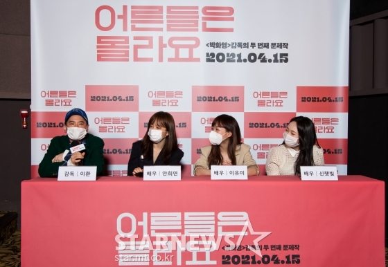 연예영화'어른들은 몰라요' 배급시사회 개최[★포토]발행 : 2021.04.06 ・ 16:41이동훈 기자이환 감독, 배우 안희연(하니), 이유미, 신햇빛이 6일 오후 서울 롯데시네마 건대입구점에서 진행된 영화 '어른들은 몰라요'(감독 이환) 배급시사회에 참석해 질문에 답하고 있다. /사진제공=다봄 2021.04.06<저작권자 © 스타뉴스, 무단전재 및 재배포 금지>어른들은몰라요추천 기사이동훈 기자기자홈좋아요 연예-영화의 인기 급상승 뉴스연예-영화의 최신 뉴스