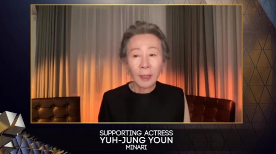 ○…윤여정이 한국 배우 최초로 영국 아카데미 시상식(BAFTA)에서 여우조연상을 수상했다. 윤여정은 지난 11일(현지시간) 열린 제74회 영국 아카데미 시상식에서 '미나리'로 여우조연상을 받았다. 영국 아카데미 시상식에선 봉준호 감독이 '기생충'으로 지난해 각본상과 외국어영화상을, 박찬욱 감독의 '아가씨'가 외국어영화상을 수상한 적은 있지만 한국배우가 영국 아카데미 시상식에서 상을 받는 건 윤여정이 처음이다. 윤여정은 이날 시상식에서 마리아 바칼로바('보랏2), 니암 알가르('종말'), 도미니크 피시백('유다와 블랙메시아'), 애슐리 메덱('컨트리 라인')를 누르고 여우조연상을 수상하는 쾌거를 이뤘다. 윤여정이 미국배우조합 시상식에 이어 영국 아카데미 시상식에서 여우조연상을 수상하면서 25일 열리는 제93회 미국 아카데미 시상식 수상 전망이 한층 밝아졌다.