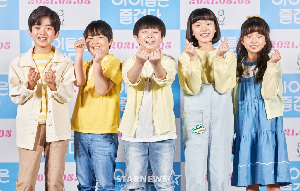 아역배우 박시완, 박예찬, 이경훈, 홍정민, 옥예린이 21일 오후 서울 강남구 삼성동 메가박스 코엑스점에서 진행된 영화 '아이들은 즐겁다' 언론시사회 및 기자간담회에 참석해 포즈를 취하고 있다.