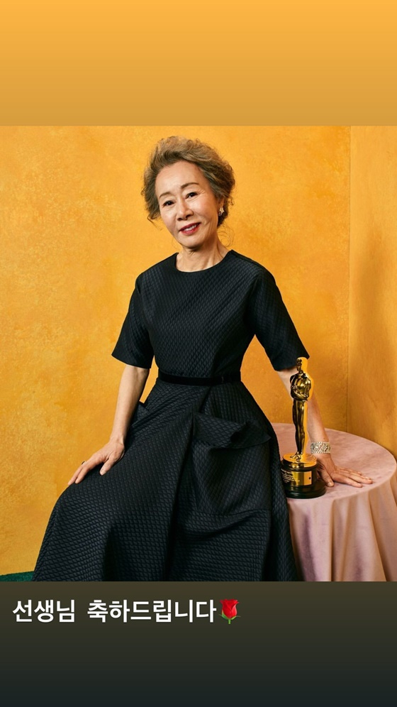 배우 송혜교가 윤여정의 오스카 수상을 축하했다.