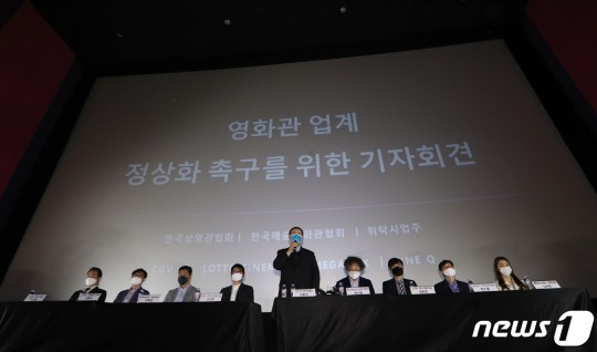 이창무 한국상영관협회 회장은 "영화산업은 세계를 선도해갈 수 있는 경쟁력 있는 문화산업이지만 코로나 이후 각종 재난 지원에서 철저히 소외 되어 있다"며 "극장은 코로나 확산 방지를 위해 정부 지침에 따라 철저한 방역 수칙을 준수했음에도 불구하고 대기업에 속한다는 이유로 늘 지원에서 배제되어왔다"고 주장했다.