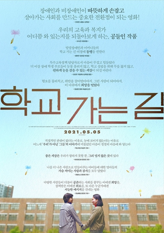 자녀를 학교에 보내고 싶은 부모의 간절함으로 무릎까지 꿇으며 17년째 전무했던 서울 시내 특수학교 설립을 이끌어 낸 장애인부모연대 학부모들의 열정적인 순간들을 기록한 영화 '학교 가는 길'이 개봉 이후 쏟아지는 실관람객들의 극찬과 함께 정치·교육계 인사들의 추천이 담긴 리뷰 포스터를 공개했다.
