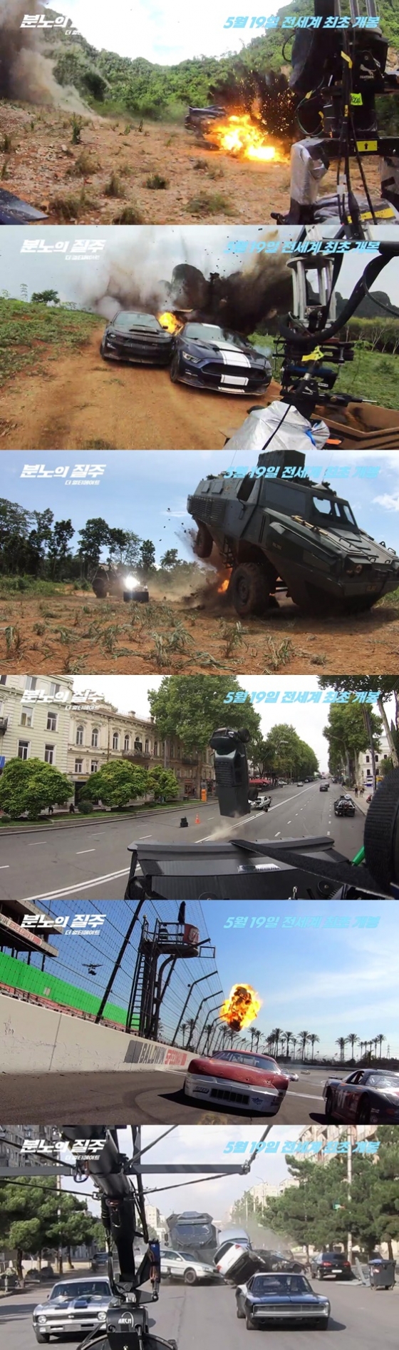이처럼 대한민국의 폭발적인 관심에 '분노의 질주: 더 얼티메이트'는 NO CG 액션 비하인드 영상을 최초 공개했다. 공개된 비하인드 영상에서는 손에 땀을 쥐게 하는 시그니처 액션들의 NO CG 모습이 눈을 뗄 수 없게 만든다. 특히 예고편에서부터 폭발적인 기대를 받았던 마그넷 액션이 실제로 자동차들이 날아가게끔 연출한 것이 영상에 담기며 극강의 액션 쾌감을 예고한다. 여기에 괴물 장갑차 액션에서도 실제로 제작된 괴물 장갑차에 여러 대의 자동차가 CG없이 부딪히는 장면들이 생생히 담기며 지상 최강 액션 블록버스터의 귀환을 알린다. 오랜 시간 대형 스크린으로 즐기는 블록버스터를 기다려온 대한민국 관객들에게 제대로 분노와 스트레스를 날려줄 압도적 액션 블록버스터가 탄생할 것으로 기대를 모은다.