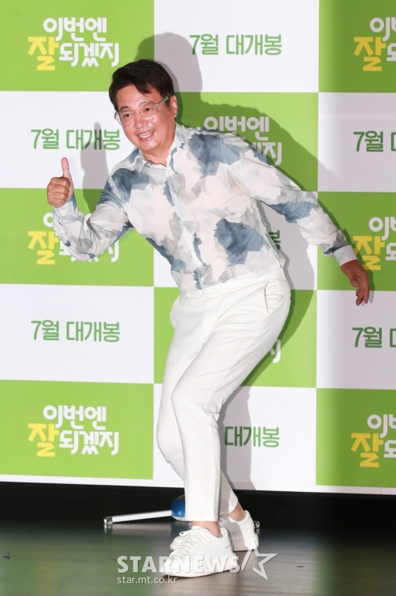배우 윤다훈이 21일 오전 서울 광진구 롯데시네마 건대입구점에서 진행된 영화 ''이번엔 잘 되겠지'(감독 이승수) 제작보고회에 참석해 포즈를 취하고 있다. 2021.05.21