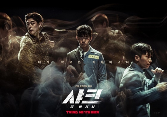 '샤크 : 더 비기닝'의 메인 포스터는 세 인물의 강력한 비주얼에서 뿜어져 나오는 폭발적 에너지로 단숨에 시선을 사로잡는다. 여기에 상어가 휩쓸고 간 것처럼 긁혀 있는 로고는 '샤크 : 더 비기닝'만의 리얼한 이미지를 거칠게 담아 이목을 집중시킨다. 먼저 정면을 응시하며 시선만으로도 비장함을 드러내는 차우솔(김민석 분)의 모습은 "내게 학교는 지옥이었다"는 카피와 함께 변화하는 그의 모습을 예감케 해 압도적인 긴장감을 선사한다.