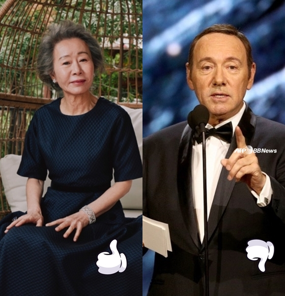 윤여정이 모교인 이화여자고등학교에서 자랑스러운 이화인상을 수상한 반면 아동 성추행 의혹을 받던 케빈 스페이시는 4년만에 활동을 재개한다. /사진=후크엔터테인먼트, AFPBBNews=뉴스1
