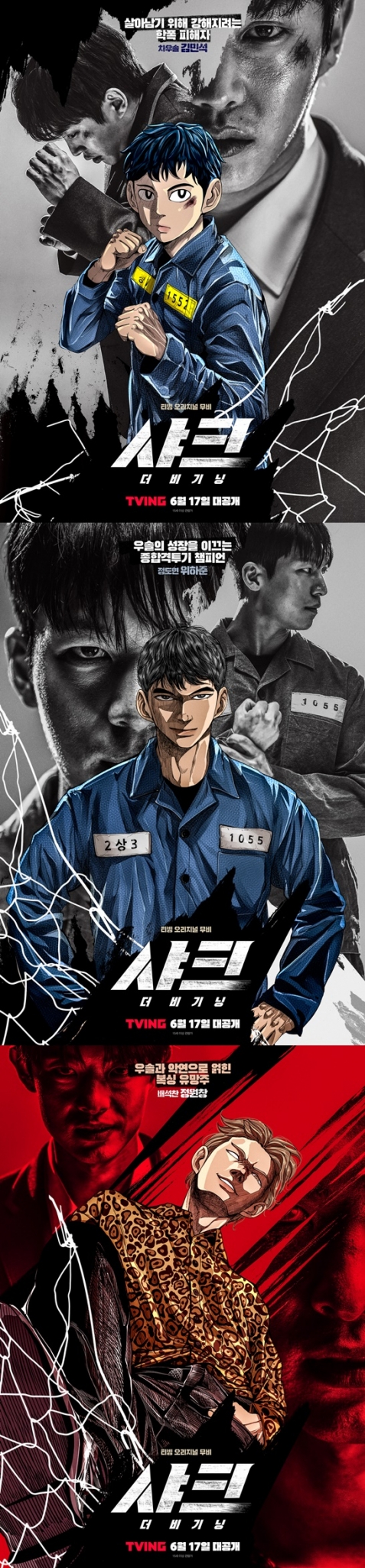 '샤크 : 더 비기닝'은 뜻밖의 사고로 소년 교도소에 수감된 학폭 피해자 차우솔(김민석 분)이 종합격투기 챔피언 정도현(위하준 분)을 만나 자신의 한계를 하나씩 부숴나가는 리얼 생존 액션.