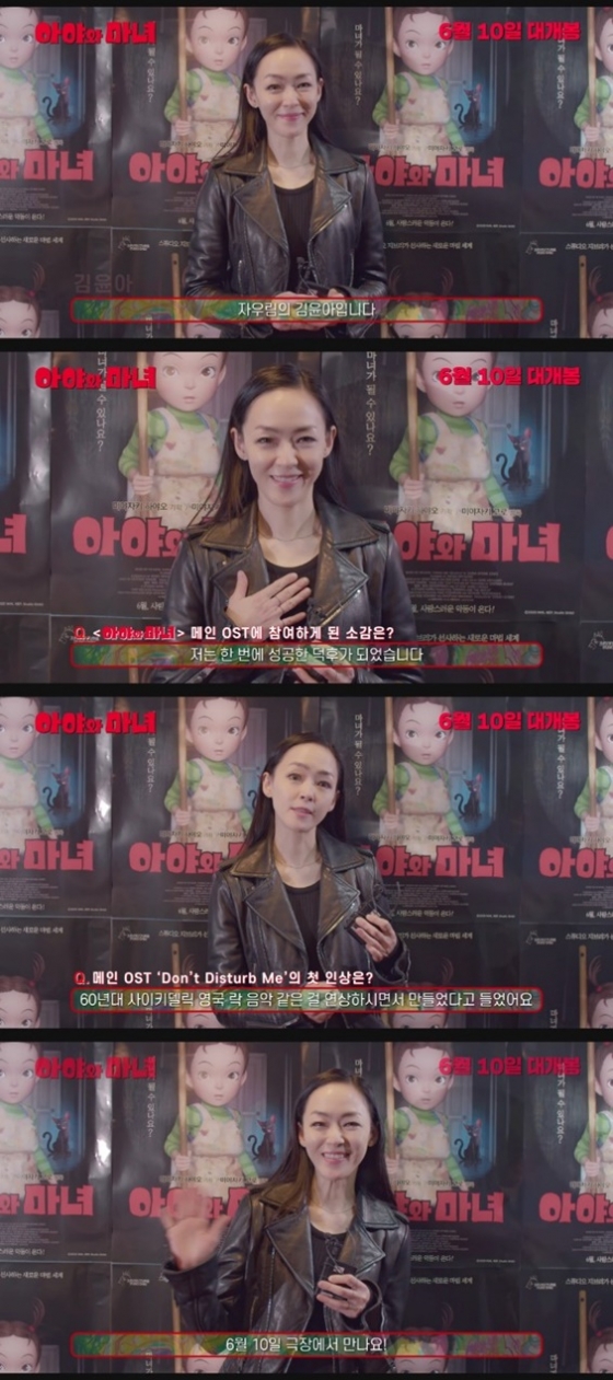 영상 속 김윤아는 "저는 성공한 덕후가 되었습니다. 어릴 때부터 너무 사랑했던 스튜디오 지브리와 콜라보레이션을 진행해 영광이었다"라며 밝은 웃음과 함께 소감을 전했다. 더빙을 맡은 빨간 머리 마녀에 대해서는 "드디어 마녀 역을 맡게 되었구나 그런 느낌이었다"라며 "워낙 매력적이고 신비스러운 인물이다"고 전해 자신과 잘 어울리는 더빙 연기를 하게 된 소감을 밝혔다.