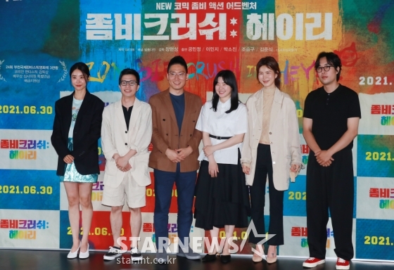 연예영화'좀비크러쉬: 헤이리 주역들'[★포토]발행 : 2021.06.23 ・ 13:53이동훈 기자배우 박소진, 조승구, 장현상 감독, 배우 이민지, 공민정, 김준식이 23일 오전 서울 광진구 롯데시네마 건대입구점에서 진행된 영화 '좀비크러쉬: 헤이리' 언론시사회에 참석해 포즈를 취하고 있다. /2021.06.23<저작권자 © 스타뉴스, 무단전재 및 재배포 금지>좀비크러쉬헤이리추천 기사이동훈 기자기자홈좋아요 연예-영화의 인기 급상승 뉴스연예-영화의 최신 뉴스