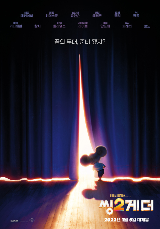 5년 만의 반가운 스크린 컴백 소식과 함께 공개된 1차 포스터는 커튼이 쳐진 무대 뒤, 두근거리는 꿈의 무대를 준비하고 있는 버스터 문(매튜 맥커너히 분)의 모습이 담겼다. "꿈의 무대, 준비 됐지?"라는 카피는 오랫동안 꿈꿔온 무대를 목전에 앞둔 이들의 설렘을 전달한다.