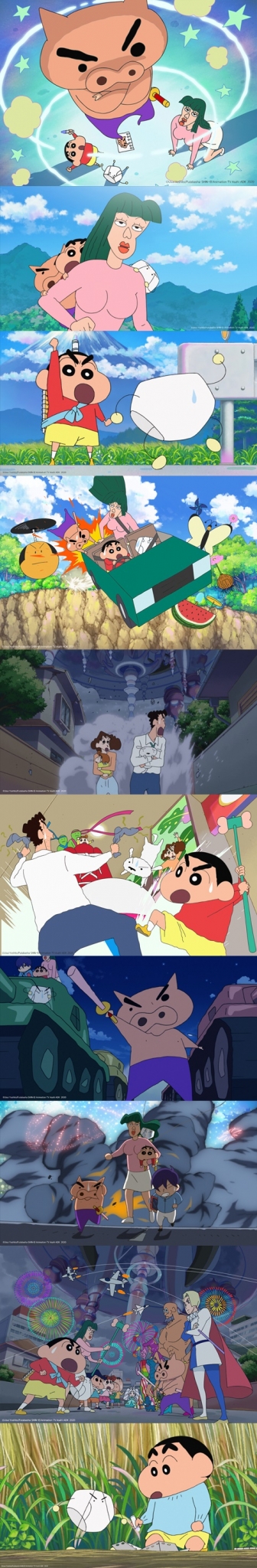 '극장판 짱구는 못말려' 28번째 시리즈 '극장판 짱구는 못말려: 격돌! 낙서왕국과 얼추 네 명의 용사들'이 7월 개봉을 확정하고 보도스틸 10종을 전격 공개했다.