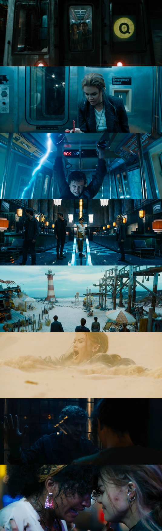 먼저 첫 번째 스틸은 의문의 조직 '미노스'를 쫓아 뉴욕으로 온 '조이'(테일러 러셀)와 '벤'(로건 밀러)이 정체불명의 남자에게 휘말려 지하철에 탄 후 수상한 낌새를 알아채는 장면이다. 순식간에 앞 칸과 분리된 지하철이 굉음을 내며 무서운 속도로 폐정거장을 향해 달려가자 놀라는 '조이'와 '벤'의 모습은 출구 없는 탈출 게임의 새로운 시작을 알리며 긴장감을 자아낸다.