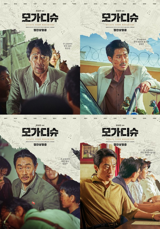 4일 롯데엔터테인먼트는 '모가디슈'의 열띤 흥행 돌풍을 이끈 주역들을 모두 담은 캐릭터 8종 포스터를 공개했다. 영화 '모가디슈'는 1991년 소말리아의 수도 모가디슈에서 내전으로 인해 고립된 사람들의 생사를 건 탈출을 그린 영화.