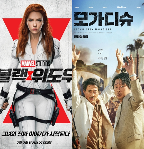 '블랙 위도우' '모가디슈' 등 대작 영화들이 개봉한 덕분에 사회적 거리두기 격상에도 불구하고 7월 극장 전체 매출액과 관객수는 전년에 비해 증가했다.