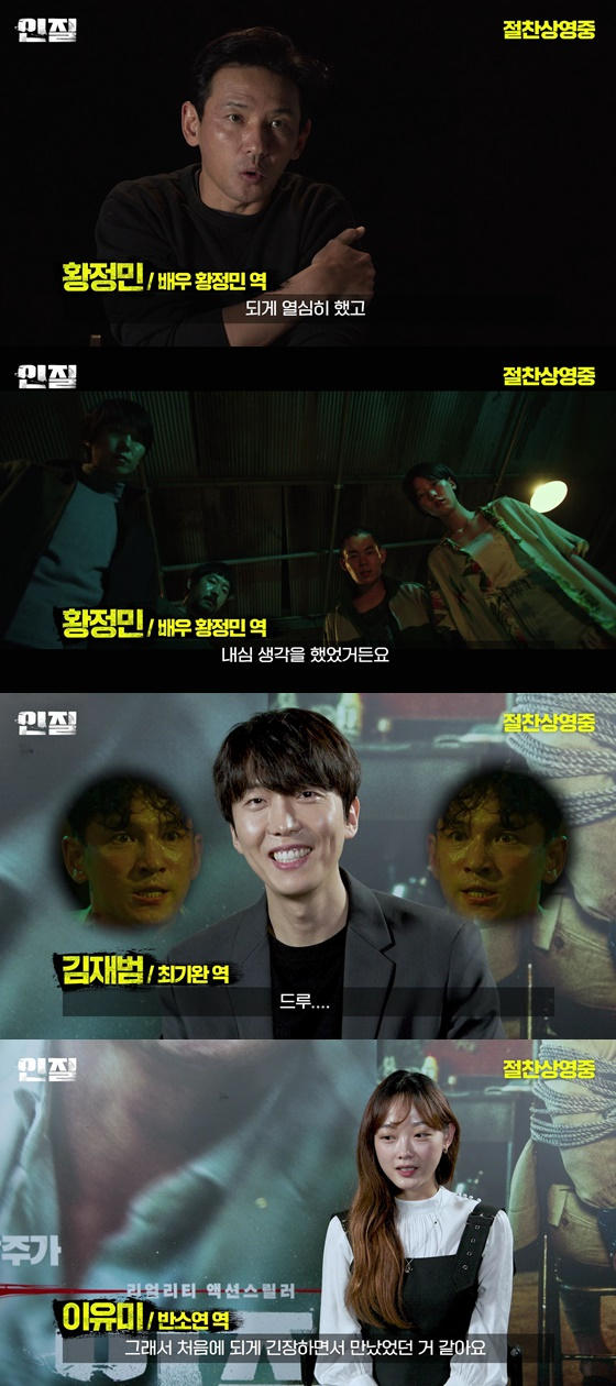 공개된 영상은 황정민과 '인질' 속 보석 같은 배우 여섯 명이 함께해 '#첫 만남', '#시너지', '#액션', '#보석 같은 배우들'에 대한 반전 인터뷰를 담아냈다. 그동안 황정민을 납치한 빌런과 또 다른 인질로서의 모습만 대중에게 공개됐던 여섯 명의 배우들은 영상 속 발랄하고 유쾌한 모습으로 반전 매력을 자랑한다. 뿐만 아니라 인터뷰가 익숙하지 않은 신예 배우들이 인터뷰 시작과 동시에 "어디 보고 말해야 해요?"라고 하며 어색해하는 모습은 영화 속 거칠 것 없는 캐릭터들과 180도 다른 모습으로 웃음을 전달한다.