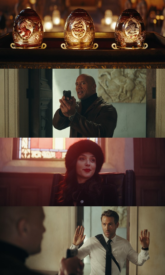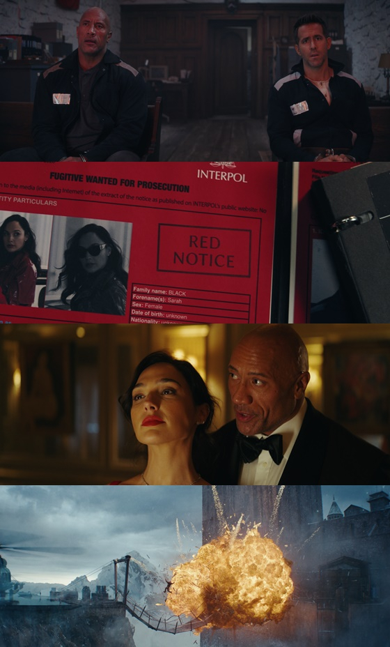 드웨인 존슨, 갤 가돗, 라이언 레이놀즈까지 할리우드 최고의 스타들이 총출동해 화제를 모은 넷플릭스 영화다. '분노의 질주' 시리즈의 드웨인 존슨이 FBI 프로파일러 존 하틀리로, '원더우먼' 시리즈의 갤 가돗이 전 세계를 주름잡는 미술품 도둑 비숍, '데드풀'과 넷플릭스 영화 '6 언더그라운드'의 라이언 레이놀즈가 비숍을 제치고 최고의 범죄자가 되는 것이 목표인 사기꾼 놀런 부스를 연기했다. 제목인 '레드 노티스(Red Notice)'는 인터폴이 국제 지명 수배자에게 내리는 최고 등급 적색수배를 뜻한다.