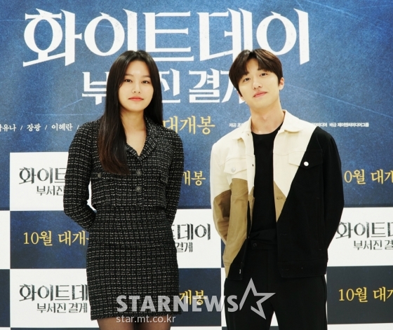 배우 박유나, 강찬희가 10일 오전 온라인 생중계로 진행된 영화 '화이트데이: 부서진 결계'(감독 송운) 제작보고회에 참석해 포즈를 취하고 있다.