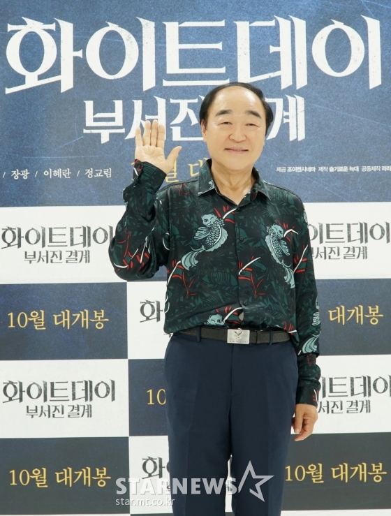 배우 장광이 10일 오전 온라인 생중계로 진행된 영화 '화이트데이: 부서진 결계'(감독 송운) 제작보고회에 참석해 포즈를 취하고 있다.